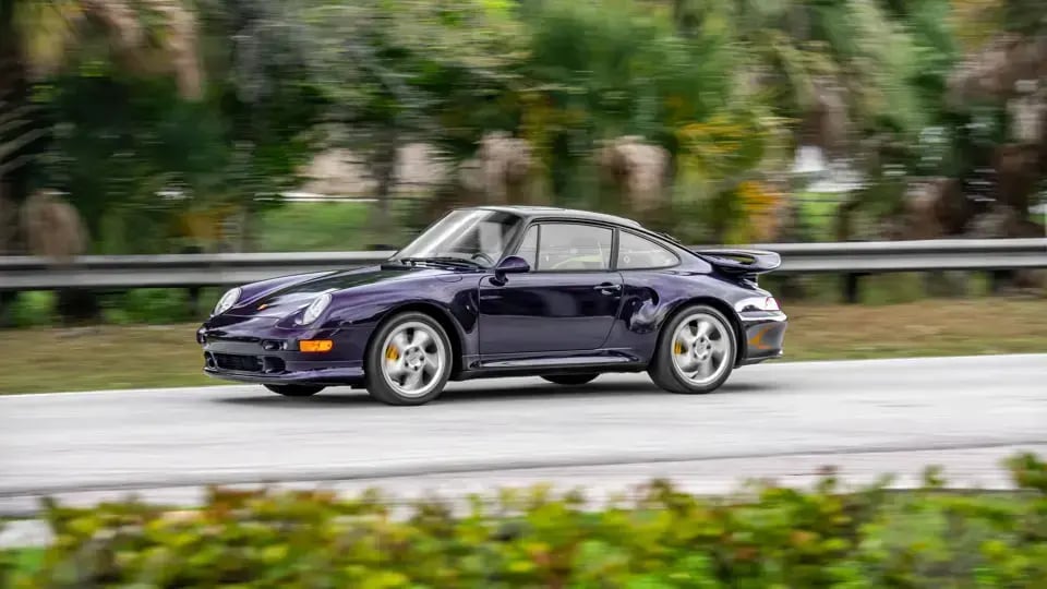 تم تسليم سيارة "بورش 911 تيربو إس" هذه في البداية إلى "بروموس"، وهو وكيل بورش الشهير في جاكسونفيل، فلوريدا. كانت واحدة من 183 نموذجاً تم إنتاجه للسوق الأمريكي، ومن بين 3 فقط تم طلاؤها بلون فيولا ميتاليك الأنيق. الداخلية فريدة بالكامل، حيث تتميز بجلد "روبيكون غراي" في جميع أنحاء المقصورة، مع تفاصيل من خيوط "سبيد يلو" المميزة، وأحزمة الأمان، والزخارف. كما تحتوي السيارة على حزمة صوت رقمية، مقاعد مسخنة بأسلوب السباقات، مصابيح "ليترونيك"، مساند رأس مطرزة، وعجلات خفيفة قياس 18 بوصة.